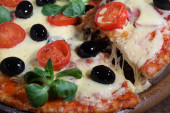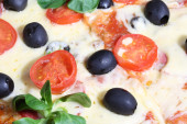 Kawałek pizzy i pizza z salami, szynka i pomidory na