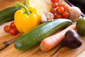 świeże warzywa na drewnianym tle