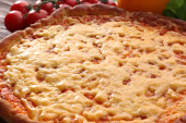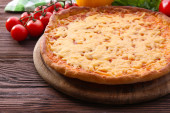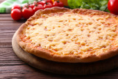 ser do pizzy na drewnianą deską do krojenia, zbliżenie
