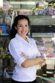 właściciel sklepu z przodu sklep