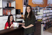 właściciel sklepu z przodu sklep