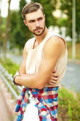 portret przystojny pomyślnie goleniu mężczyzna na białym tle uśmiechnięty