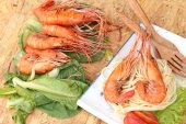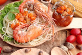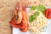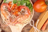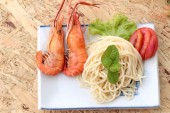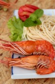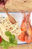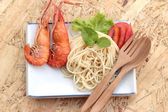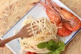 Zdjęcie "Makaron spaghetti z krewetkami na talerzu." może być wykorzystywane do celów osobistych i komercyjnych zgodnie z warunkami zakupionej licencji Royalty-free. Obraz jest dostępny do pobrania w jakości wysokiej rozdzielczości do 5760x3840.