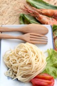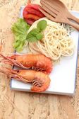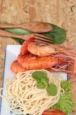 Zdjęcie "Makaron spaghetti z krewetkami na talerzu." może być wykorzystywane do celów osobistych i komercyjnych zgodnie z warunkami zakupionej licencji Royalty-free. Obraz jest dostępny do pobrania w jakości wysokiej rozdzielczości do 5760x3840.