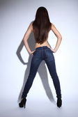Seksowny, młody seksowny topless modelu dżinsy i obcasy