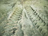 ślady kół na glebie.