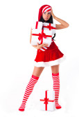 Zdjęcie "Santa kobieta ukrywa małe pudełko" może być wykorzystywane do celów osobistych i komercyjnych zgodnie z warunkami zakupionej licencji Royalty-free. Obraz jest dostępny do pobrania w jakości wysokiej rozdzielczości do 5760x3840.
