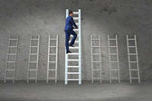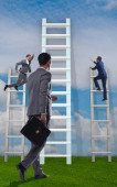 biznesmen wspinania się po drabinie przeciwko gradientu