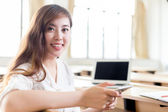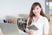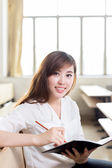 kobiece student studia w klasie z tabletem