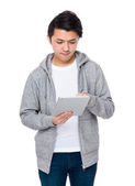 Zdjęcie "azjatycki człowiek przy użyciu komputera typu tablet" może być wykorzystywane do celów osobistych i komercyjnych zgodnie z warunkami zakupionej licencji Royalty-free. Obraz jest dostępny do pobrania w jakości wysokiej rozdzielczości do 5760x3840.