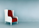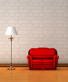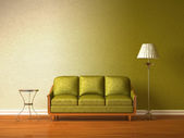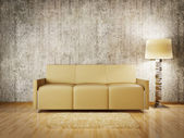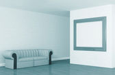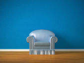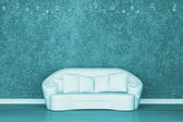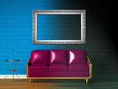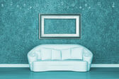 kanapa z tabeli i standardowej żarówki w niebieskie wnętrze