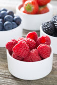 blackberries in bowl and fresh garden berries, top view