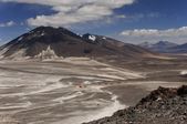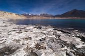 Laguna miscanti jeziora z śniegu ograniczona wulkan, altiplano, atacam