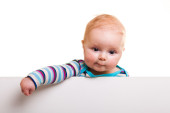 niemowlę dziewczynka trzymając głowę na białym tle