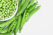 świeży zielony groszek w pod