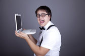 człowiek przytrzymanie pudełko w posiadanie tux czarny