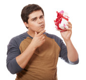 smutno rudowłosa dziewczyna z pudełko.