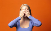 brunetka dziewczynka hir zamknij oczy i uśmiechając się.