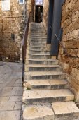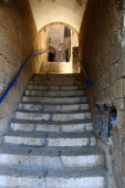 wąskie uliczki starej Jerozolimy. Kamienne domy i łuków