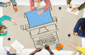 Ludzie z ładowaniem danych transferu