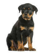 Zdjęcie "Rottweiler (9 months old) sitting in front of a white background" może być wykorzystywane do celów osobistych i komercyjnych zgodnie z warunkami zakupionej licencji Royalty-free. Obraz jest dostępny do pobrania w jakości wysokiej rozdzielczości do 5760x3840.