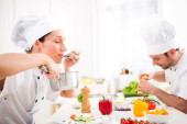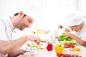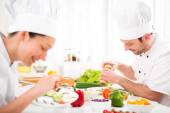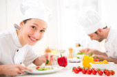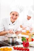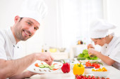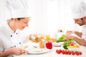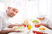 młody atrakcyjny profesjonalny szef kuchni w swojej kuchni