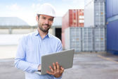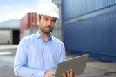 dwóch młodych niezwykłych dokerów pracuje na stacji dokującej