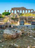 Majestatyczne stanowisko archeologiczne w Paestum, prowincja Salerno, Kampania, Włochy.