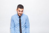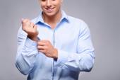 Handsome young man isolated on grey