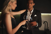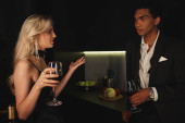Młoda para dzieli się śmiechem i połączeniem przy drinku podczas randki.