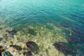 Zdjęcie "Wybrzeże z kamieni i niebieski ocean wody." może być wykorzystywane do celów osobistych i komercyjnych zgodnie z warunkami zakupionej licencji Royalty-free. Obraz jest dostępny do pobrania w jakości wysokiej rozdzielczości do 5760x3840.