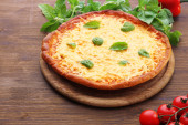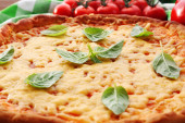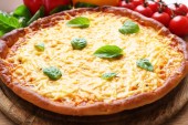Zdjęcie "Cheese pizza with basil on wooden cutting board, closeup" może być wykorzystywane do celów osobistych i komercyjnych zgodnie z warunkami zakupionej licencji Royalty-free. Obraz jest dostępny do pobrania w jakości wysokiej rozdzielczości do 5760x3840.