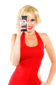 kobieta w czerwonej sukience
