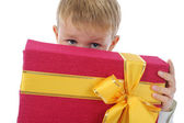 wesoły chłopak w santa claus kapelusz