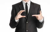 Zdjęcie "Businessman and gesture topic: a man in a black suit and white shirt showing gestures with hands on a dark blue background in studio isolated" może być wykorzystywane do celów osobistych i komercyjnych zgodnie z warunkami zakupionej licencji Royalty-free. Obraz jest dostępny do pobrania w jakości wysokiej rozdzielczości do 5760x3840.