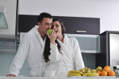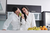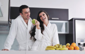 młoda para bawić się w nowoczesnej kuchni