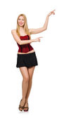 Kobieta nosi krótkie mini czerwona sukienka na białym tle
