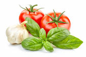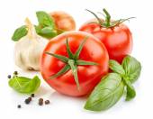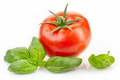 Świeże pomidory i liści bazylii