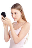 piękna kobieta z pamiątkami w pudełko w kształcie serca