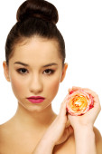 piękna kobieta z obecnych w pudełko w kształcie serca