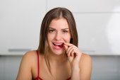 piękna kobieta z obecnych w pudełko w kształcie serca