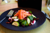 Zdjęcie "Sałatka z łososiem wędzonym z rakiet" może być wykorzystywane do celów osobistych i komercyjnych zgodnie z warunkami zakupionej licencji Royalty-free. Obraz jest dostępny do pobrania w jakości wysokiej rozdzielczości do 5760x3840.