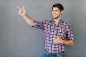 Przystojny młody mężczyzna podekscytowany w koszuli