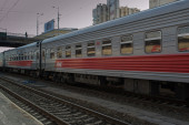 Orel (Rosja) w 19 czerwca 2015 r. – dyrygent stojący w pobliżu samochodu przed odjazdem pociągu pasażerskiego od stacji