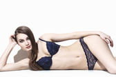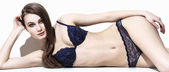 Ładna i uśmiechnięta dziewczyna sobie czarna bielizna i pozowanie