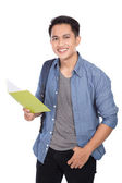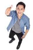 Młody człowiek Asian gospodarstwa cyfrowy dotykowy ekran typu tablet komputer o
