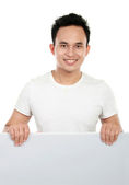 młody mężczyzna Azji przytrzymanie puste pusty transparent