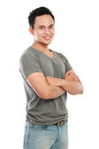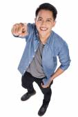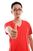 Młody mężczyzna Azji pozowanie na białym tle, kciuk w górę