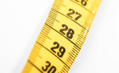 Żółta taśma pomiarowa na białym tle - selektywne focus