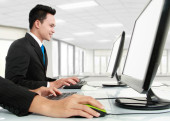 Zdjęcie "Dwóch przedsiębiorców przyjazny siedzący i dyskusji na temat nowych pomysłów przy pomocy" może być wykorzystywane do celów osobistych i komercyjnych zgodnie z warunkami zakupionej licencji Royalty-free. Obraz jest dostępny do pobrania w jakości wysokiej rozdzielczości do 5760x3840.